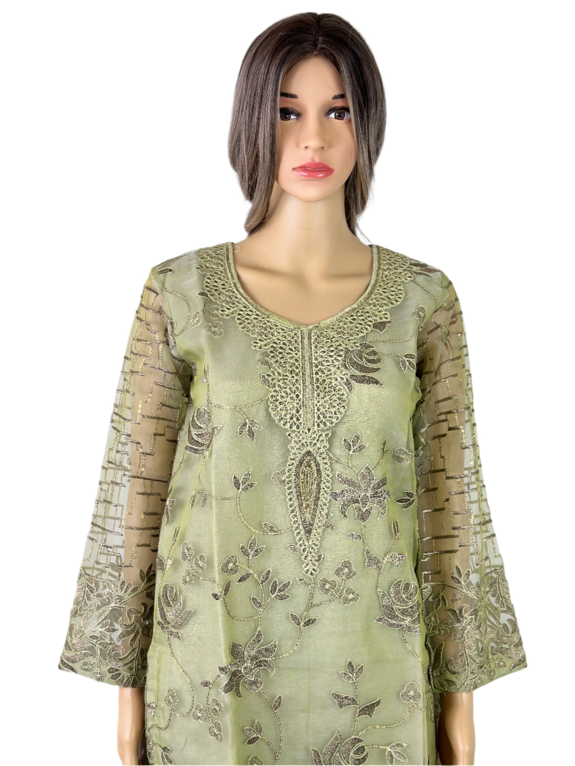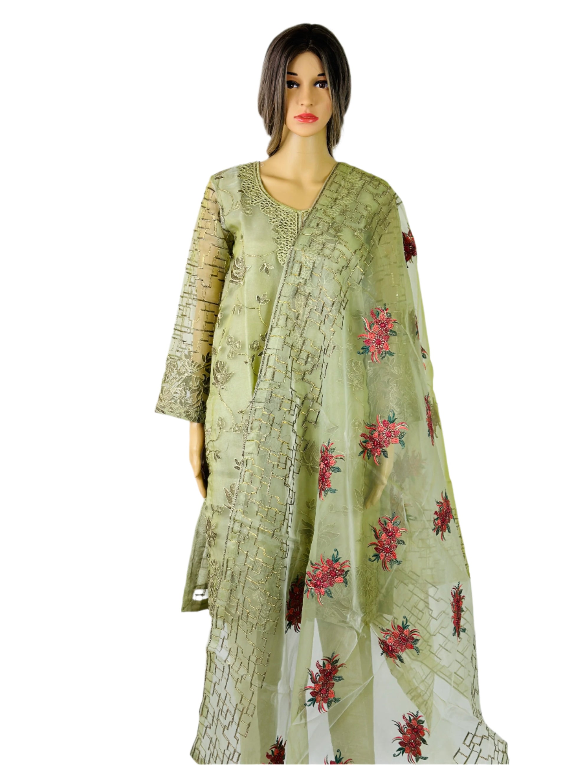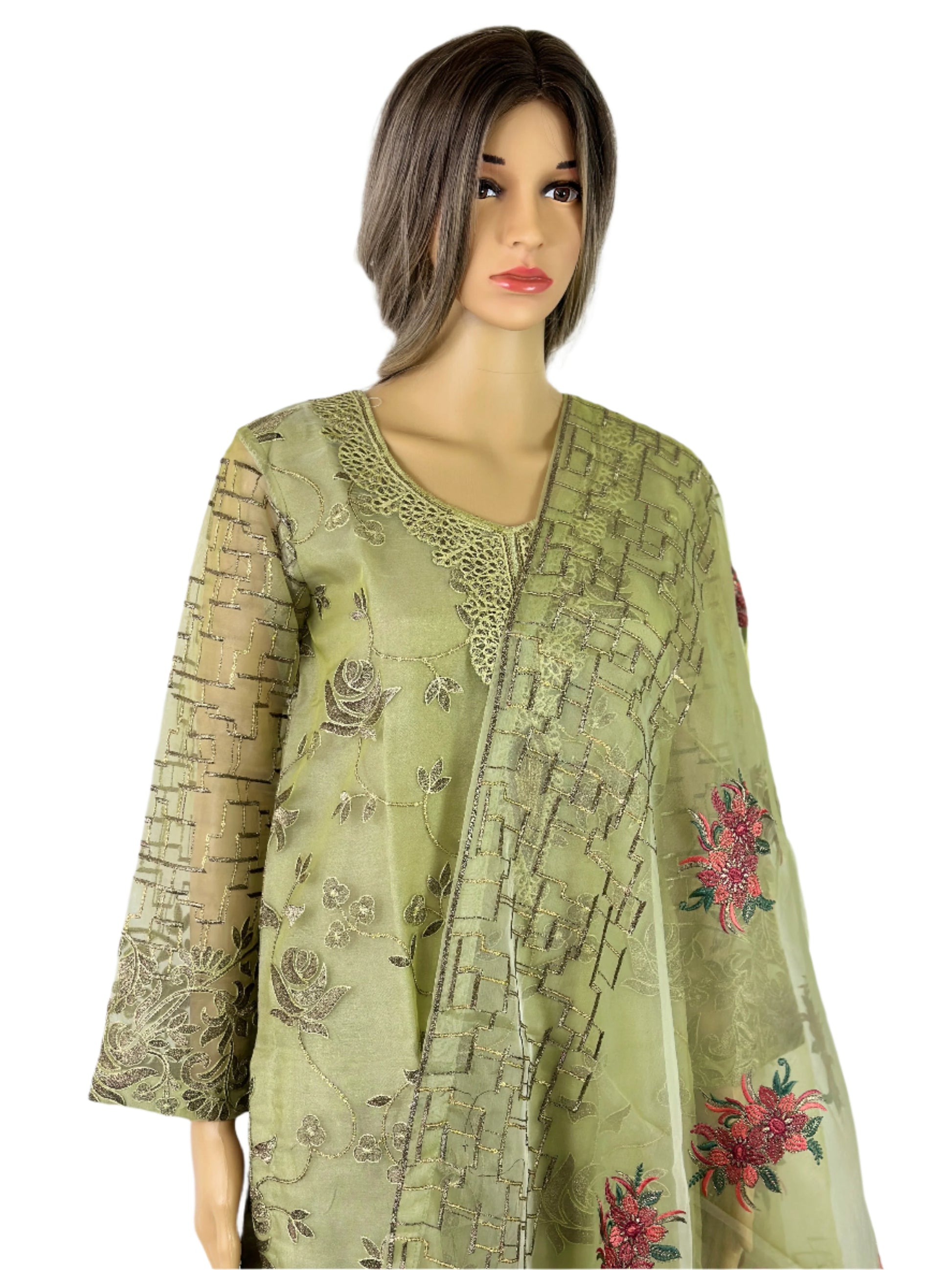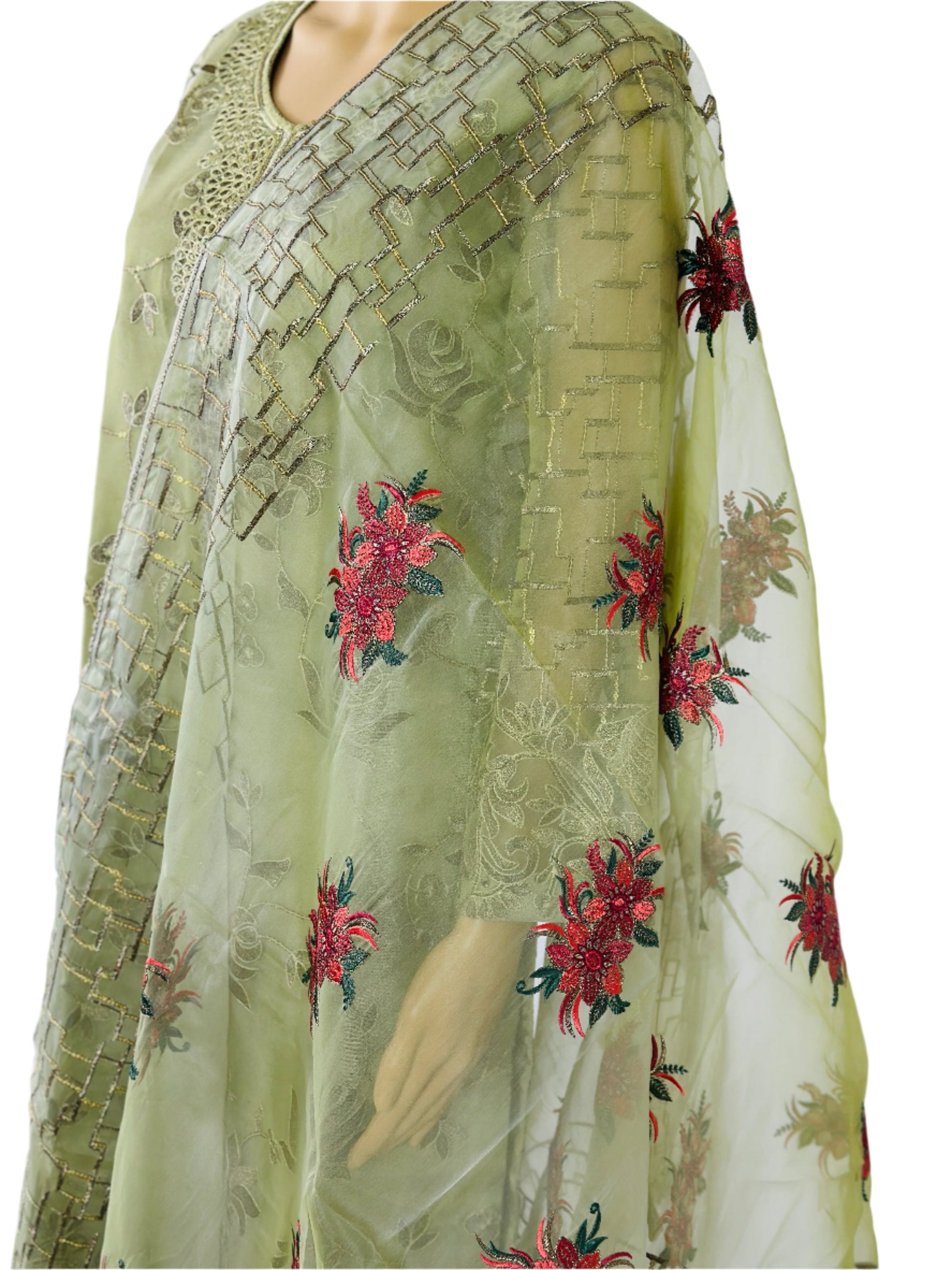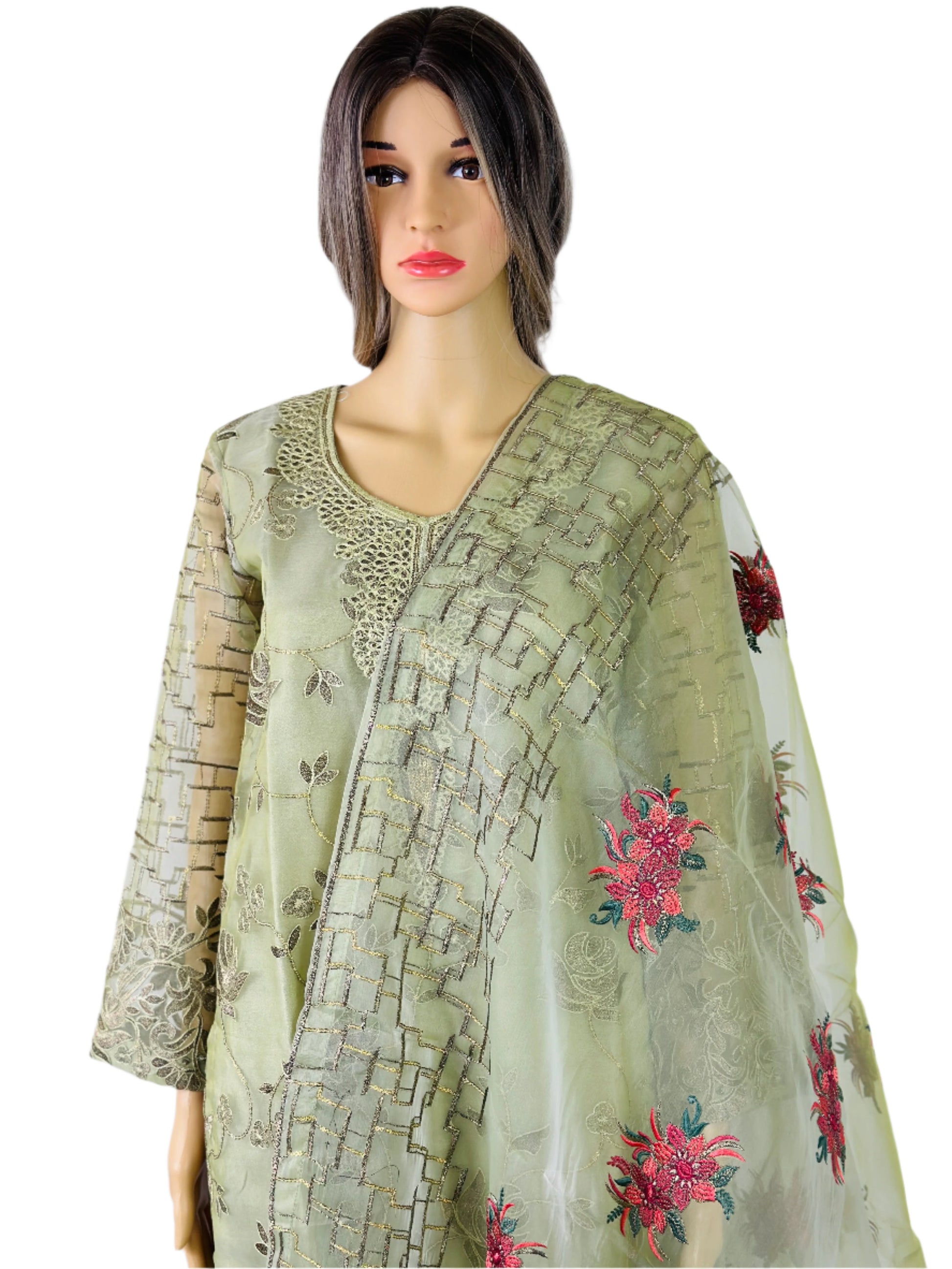 Luxurious Organza Three-Piece Suit with Embellished Details
